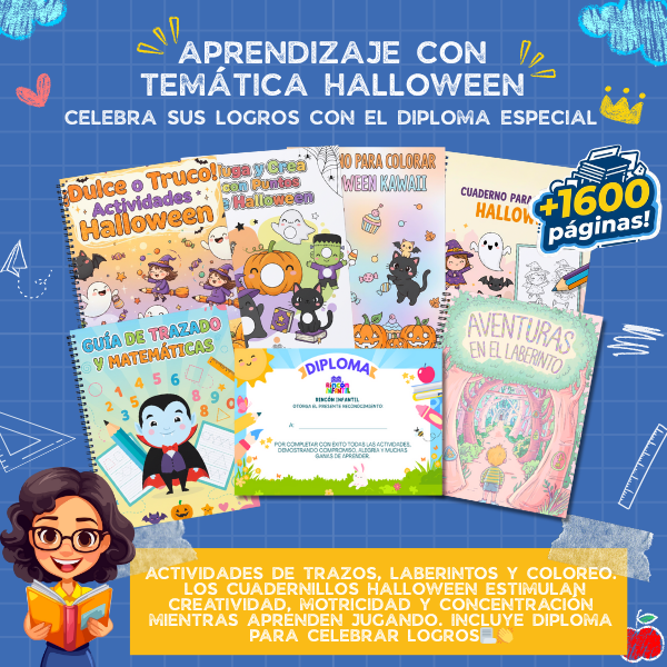 Trazos, conteo y escritura con temática Halloween. Refuerza motricidad fina y concentración de forma mágica y educativa.