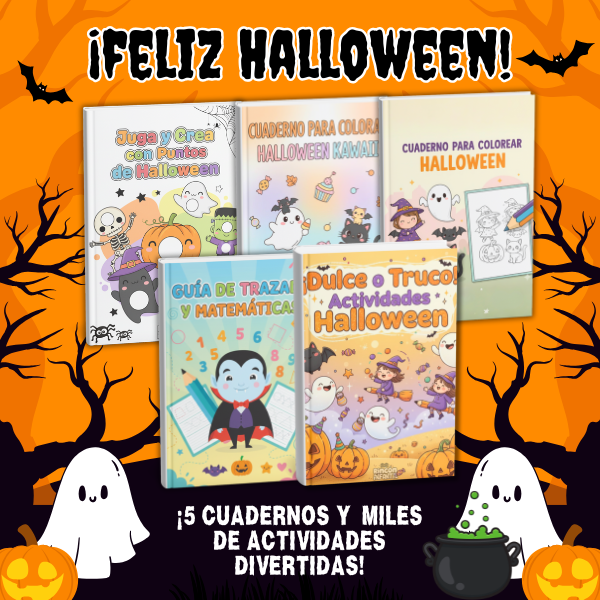 Personajes tiernos, calabazas sonrientes, fantasmitas, brujitas y murciélagos amigables que harán del aprendizaje un momento mágico.